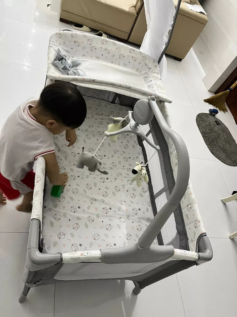 Nôi đẹp lắm mọi ng ơi. Thật sự rất hài lòng. Có màn che, có chỗ thay bỉm, để đồ, có cả đồ chơi treo nôi. Chưa kể là gấp gọn tiện lợi. Shop nhiệt tình hướng dẫn nên nếu mọi ng mới lắp có ji chưa ổn cứ nt cho shop. Em bé có nôi đẹp đã lăn quay ra làm 1 giấc. Xịn.